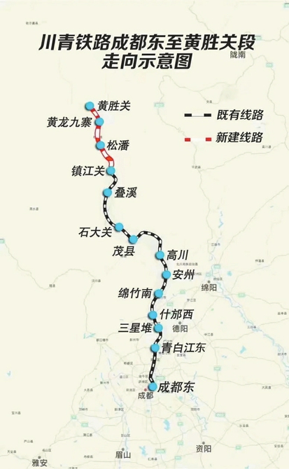 川青鐵路成黃段線路圖。中國鐵路成都局集團供圖