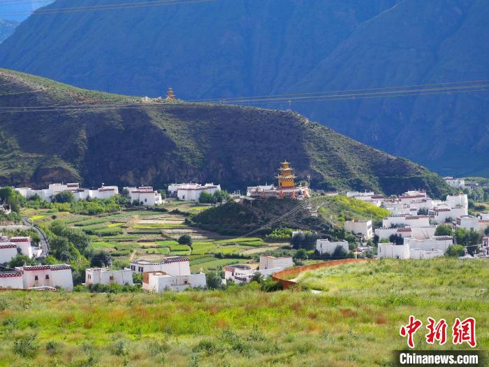 9月7日,四川省甘孜藏族自治州鄉(xiāng)城縣青德鎮(zhèn)仲德村,白藏房如珍珠般散落于高原河谷上?!↑S欣欣 攝