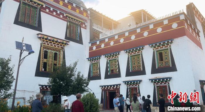 9月7日,由中華全國(guó)臺(tái)灣同胞聯(lián)誼會(huì)主辦的兩岸媒體人四川行采訪團(tuán)走進(jìn)四川省甘孜藏族自治州鄉(xiāng)城縣青德鎮(zhèn)仲德村,圖為當(dāng)?shù)夭孛窦业陌撞胤??!↑S欣欣 攝