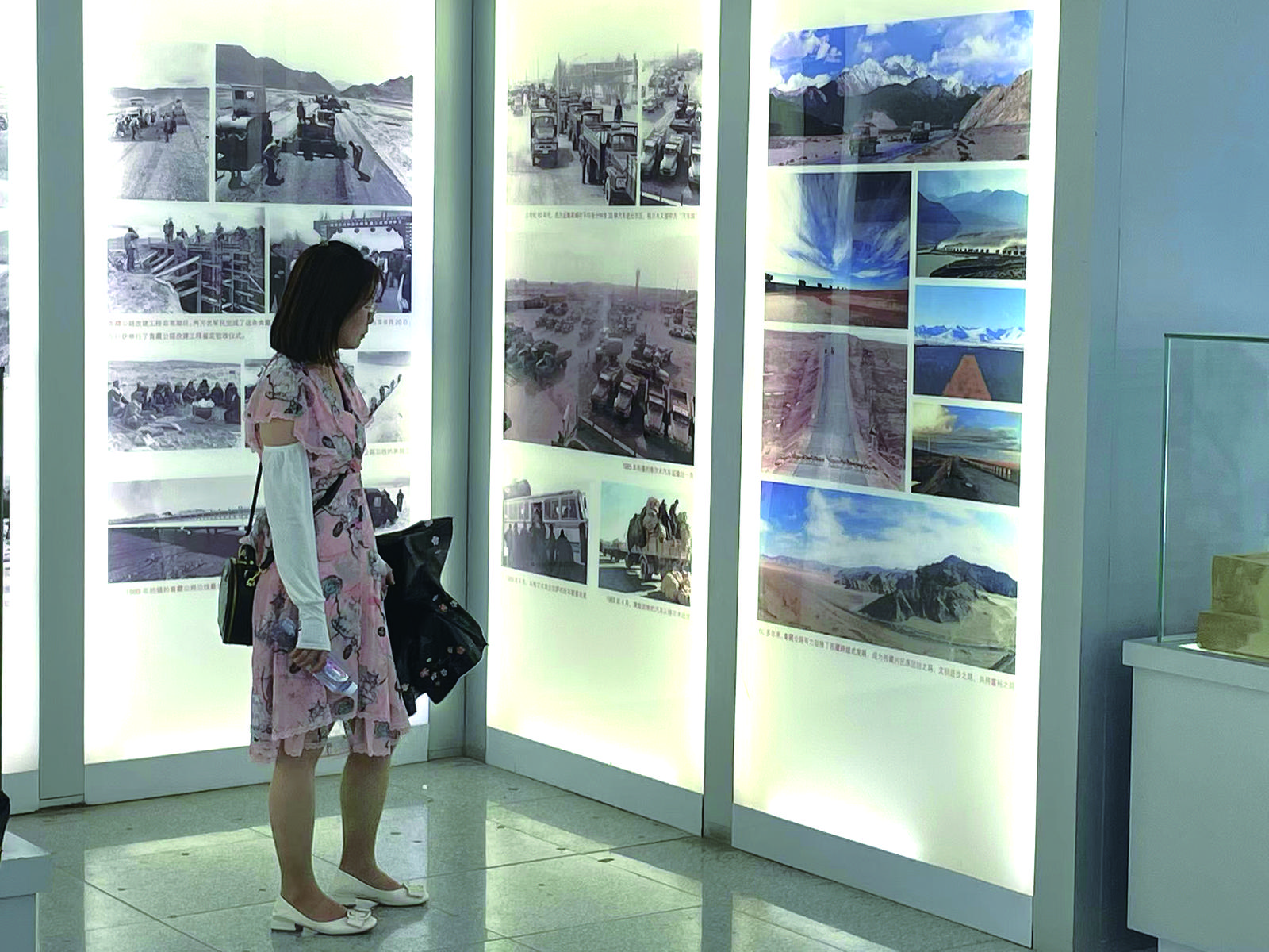 第一展廳里,那豐富的資料如同一幅幅畫卷,圍繞著“一位將軍、一條公路、一個(gè)奇跡、一段歷史、一座新城、一種精神”徐徐展開,每一張圖片、每一段文字都在講述著格爾木發(fā)展歷程中那些動(dòng)人心弦的故事。