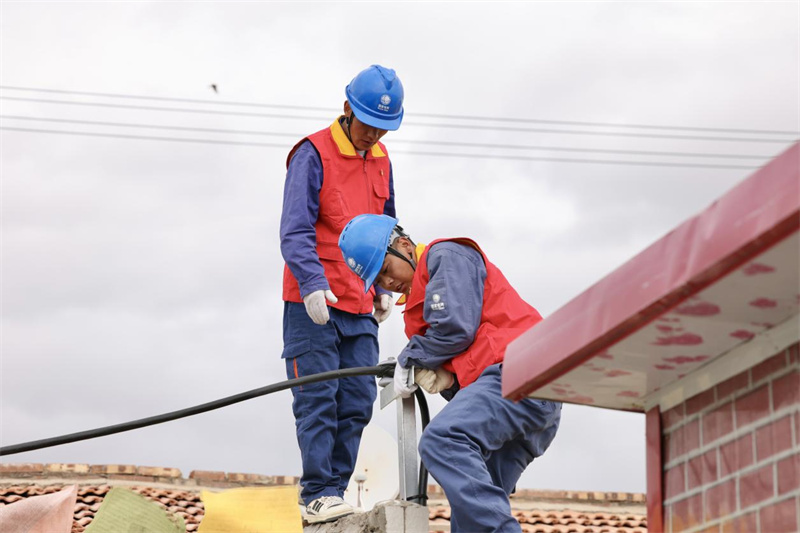 9月28日,在蘇里35千伏輸變電工程投入運(yùn)行前,國(guó)家電網(wǎng)天峻縣供電公司員工在牧民家檢查用電線路。李逸飛 攝