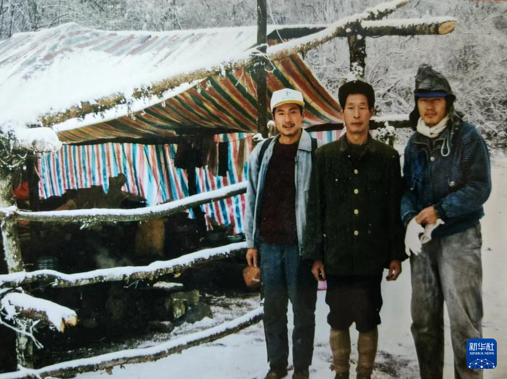 這是1996年唐玉林(左)、父親唐代貴(中)和保護(hù)區(qū)科研人員顧海軍在四川白河國家級自然保護(hù)區(qū)內(nèi)的合影(翻拍照片)。新華社記者 王曦 攝