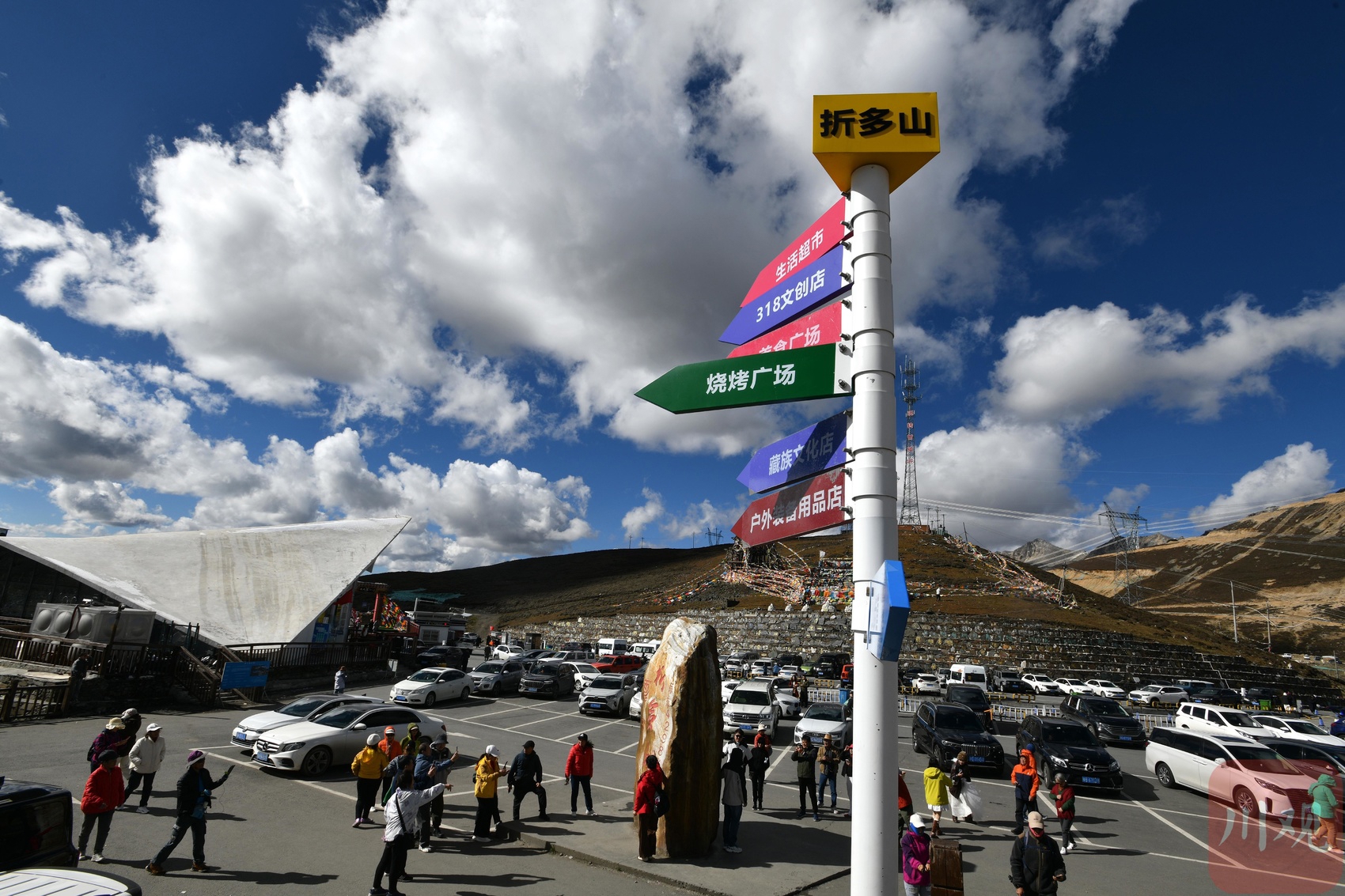 2022年上半年折多山埡口進(jìn)行了全面改造,從原來只有一尊巨石地名標(biāo)志,拓展到了集美食廣場、318文創(chuàng)店、生活超市、藏族文化店以及戶外裝備用品店為一體的綜合服務(wù)區(qū)。埡口還設(shè)置了多處停車場,方便了自駕旅行者停車打卡。
