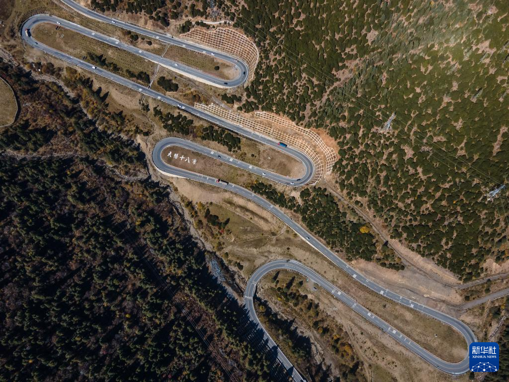 在四川省甘孜藏族自治州雅江縣拍攝的國道318公路“天路十八彎”(10月29日攝,無人機照片)。新華社記者 儲加音 攝
