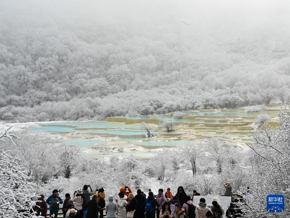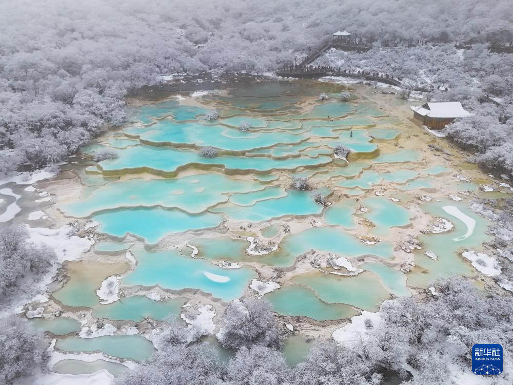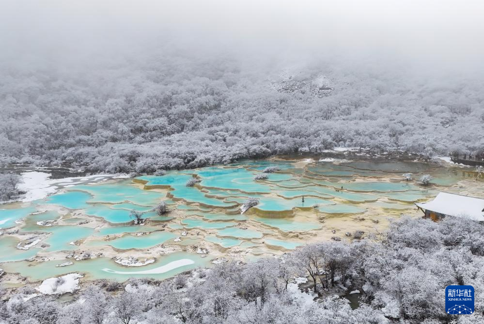 11月18日,雪后的四川省阿壩藏族羌族自治州黃龍景區(qū)薄霧彌漫,仿佛披上了一層輕紗,如夢(mèng)如幻。