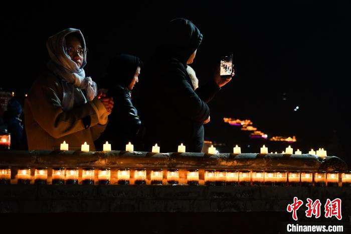 25日的日暮時(shí)分,大雪過后的青海省西寧市短暫晴朗。塔爾寺內(nèi),數(shù)萬盞酥油燈擺成或大或小的燈陣,漸次點(diǎn)亮。