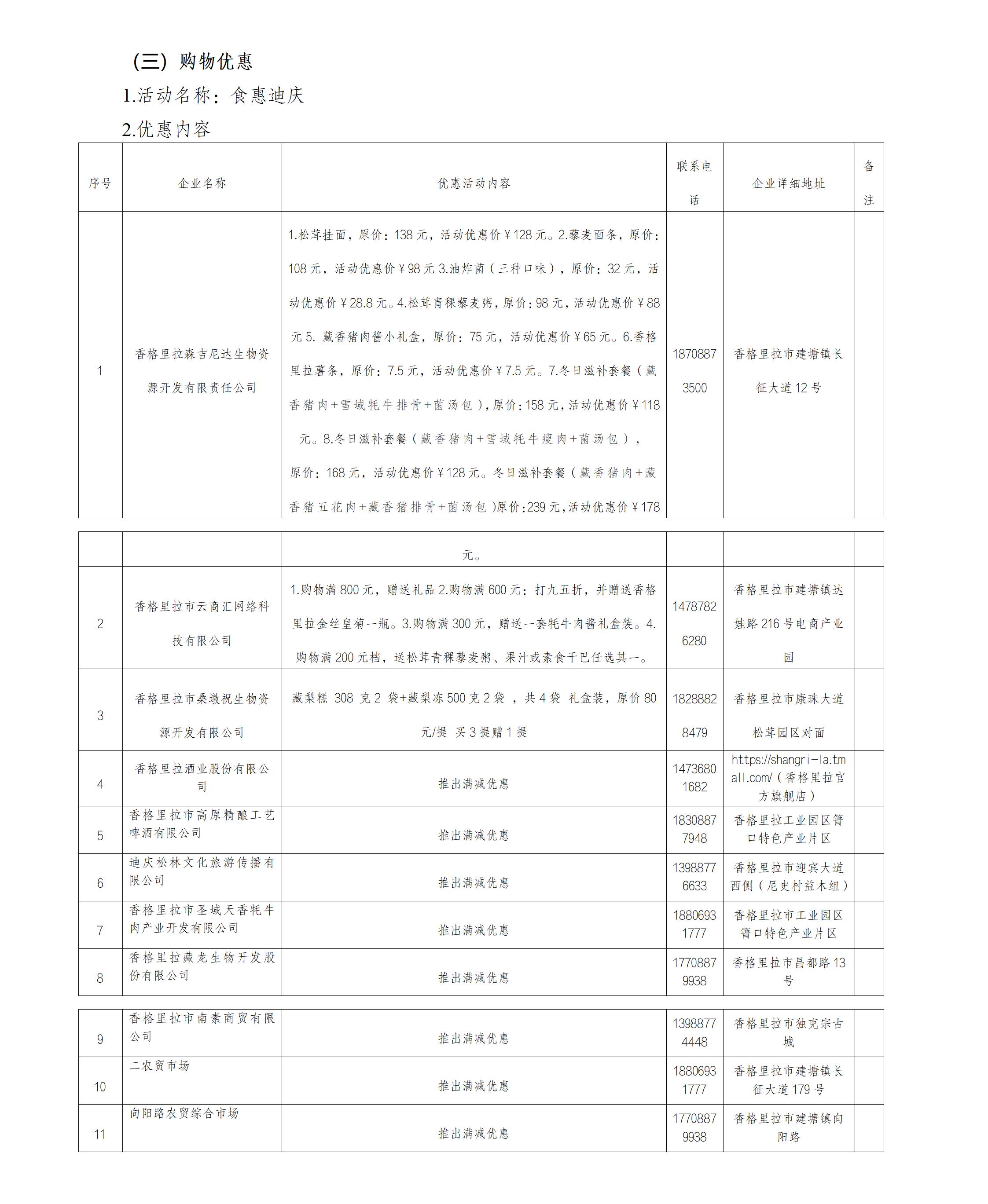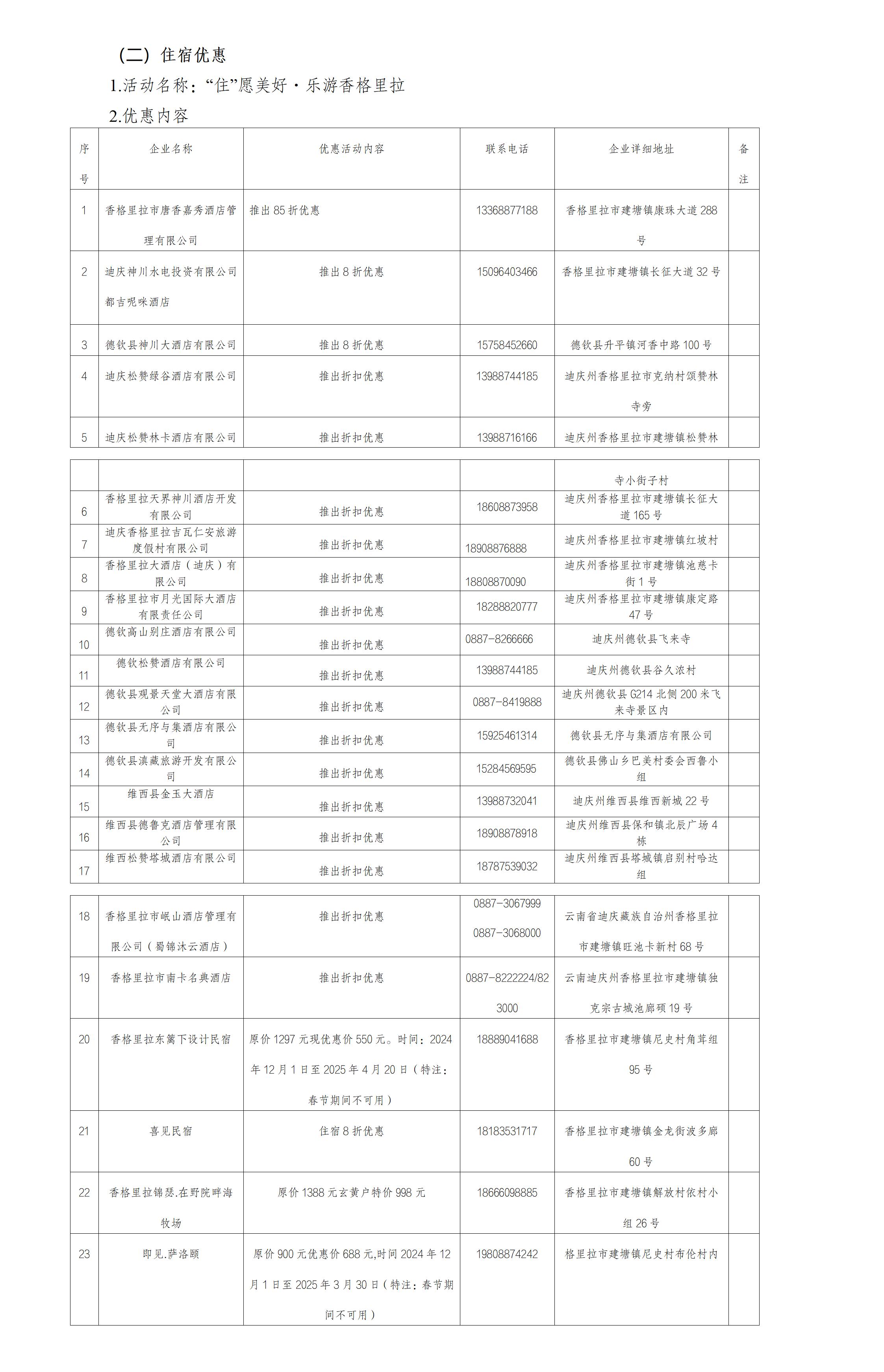 為熱烈迎接香格里拉的冬季旅游市場(chǎng)消費(fèi)客群,迪慶商務(wù)部門在動(dòng)車開(kāi)通一周年之際特別推出一系列“吃、住、購(gòu)”的優(yōu)惠政策。6家線上特色餐飲企業(yè)及20家古城精選餐飲業(yè)將提供2.2折至9.2折的超值優(yōu)惠,同時(shí)發(fā)放各類優(yōu)惠券;19家優(yōu)質(zhì)線上住宿企業(yè)及州內(nèi)百余家民宿將提供8折至8.5折的住宿優(yōu)惠;10余家迪慶特色產(chǎn)品的生產(chǎn)銷售企業(yè)推出滿減折扣優(yōu)惠、享受贈(zèng)品的優(yōu)惠福利,讓廣大游客樂(lè)游香格里拉提升旅游體驗(yàn)。