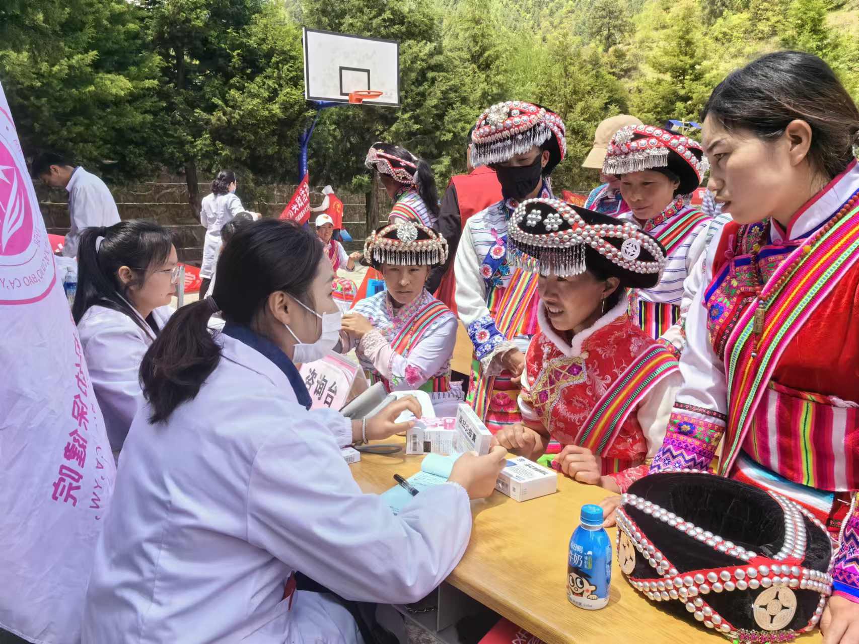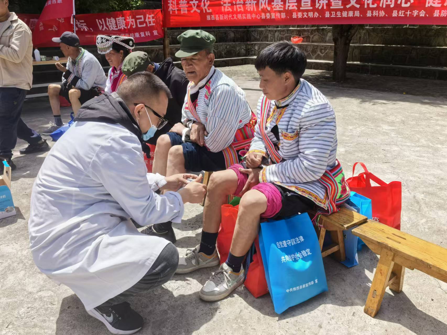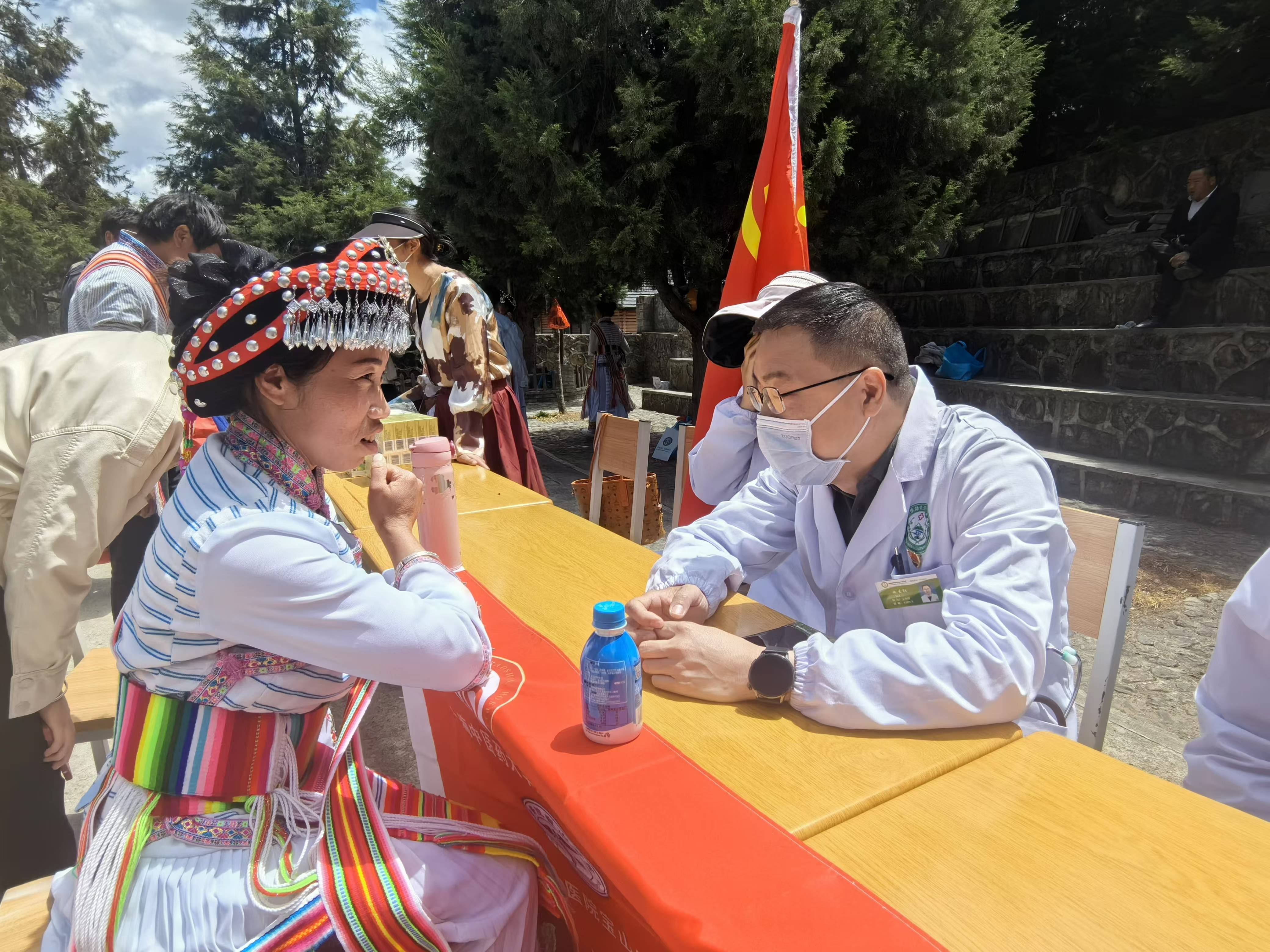 今年以來,由上海幫扶專家、縣人民醫(yī)院醫(yī)師組成的維西縣新時代文明實踐中心先鋒醫(yī)療隊多次深入村組開展巡回醫(yī)療志愿服務(wù)活動,為群眾提供心電圖等常規(guī)體檢以及多發(fā)病、慢性病等病癥現(xiàn)場診療和咨詢服務(wù),還免費向群眾發(fā)放藥品,切實解決了農(nóng)村群眾看病就醫(yī)難題。圖為上海專家志愿者向傈僳族群眾免費發(fā)放藥品。