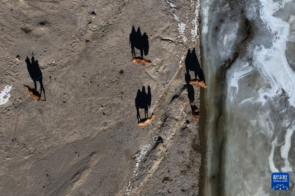 11月27日,在青海省海西蒙古族藏族自治州烏蘭縣,幾只駱駝?wù)谛蓓o(wú)人機(jī)照片)。新華社記者 張龍 攝