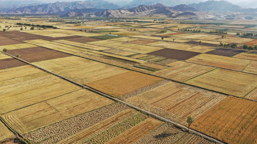 圖為9月29日拍攝的香日德連綿的農(nóng)田。新華社發(fā)(潘彬彬攝)