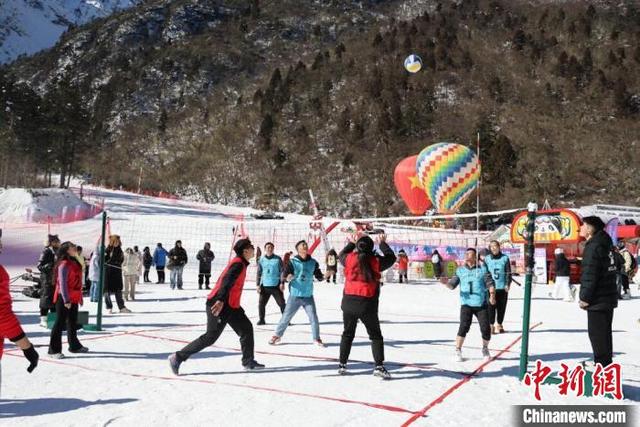 雪地氣排球表演賽。汶川融媒體中心供圖