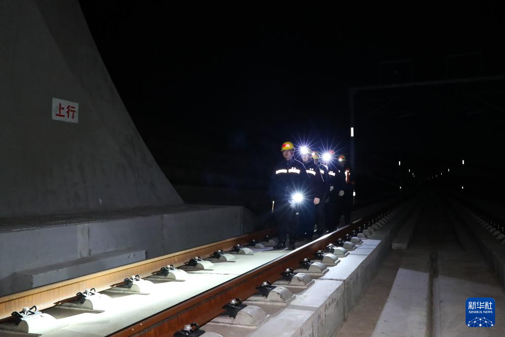 1月14日凌晨,橋隧工在新烏鞘嶺隧道內(nèi)開展全面檢查。新華社記者 郎兵兵 攝