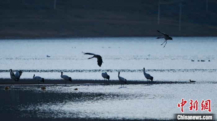 記者本月15日至16日從西藏拉薩市林周縣澎波河流域觀察了解到,中國(guó)國(guó)家一級(jí)保護(hù)動(dòng)物黑頸鶴已大量遷徙至該區(qū)域越冬。