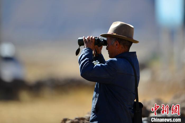 圖為西藏林周縣黑頸鶴巡護(hù)員旦增,每年入冬后他要負(fù)責(zé)轄區(qū)黑頸鶴安全過(guò)冬?!〗w波 攝