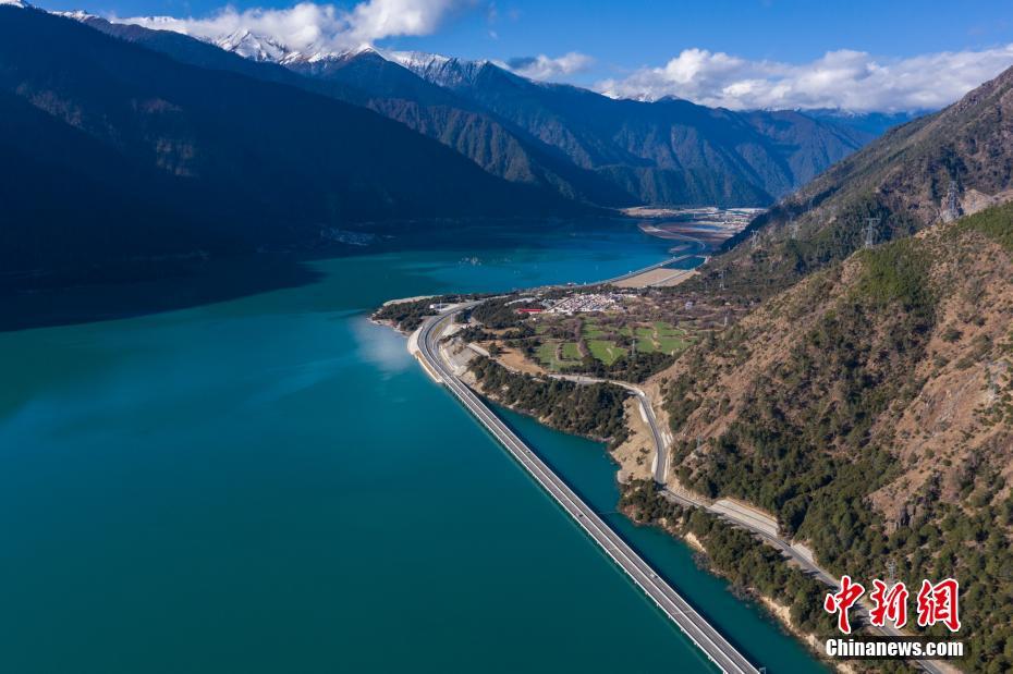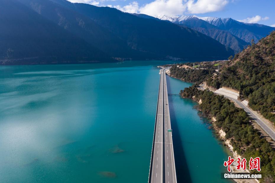作為西藏目前“顏值最高”的高等級公路,拉林高等級公路在林芝市境內(nèi)的多布特大橋路段又被譽(yù)為西藏“最美水上公路”,公路橫跨湛藍(lán)的水面,顏值爆表。 何蓬磊 攝
