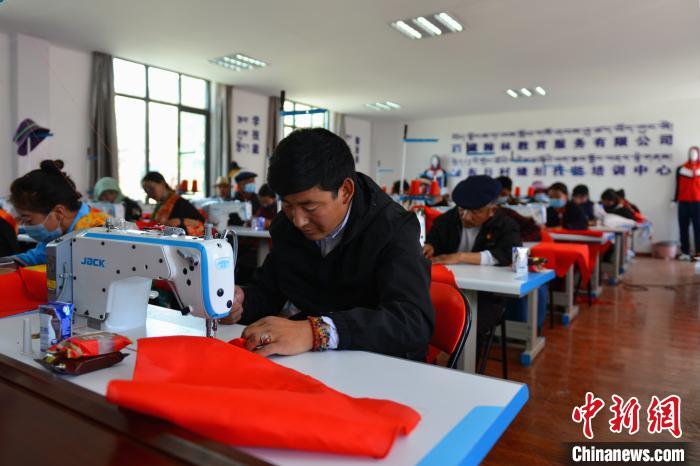 近日,中新網(wǎng)記者在現(xiàn)場(chǎng)看到,安置點(diǎn)民眾正踩著電動(dòng)縫紉機(jī)縫制紅領(lǐng)巾。“牧民們之前就有自制衣服的習(xí)慣,上手比較快,只需十多天培訓(xùn)便可以上崗?!蔽鞑睾擦纸逃?wù)有限公司總經(jīng)理蘇龍說(shuō),公司培訓(xùn)的第一批41位牧民已經(jīng)結(jié)業(yè)上崗,第二批正計(jì)劃招募中。