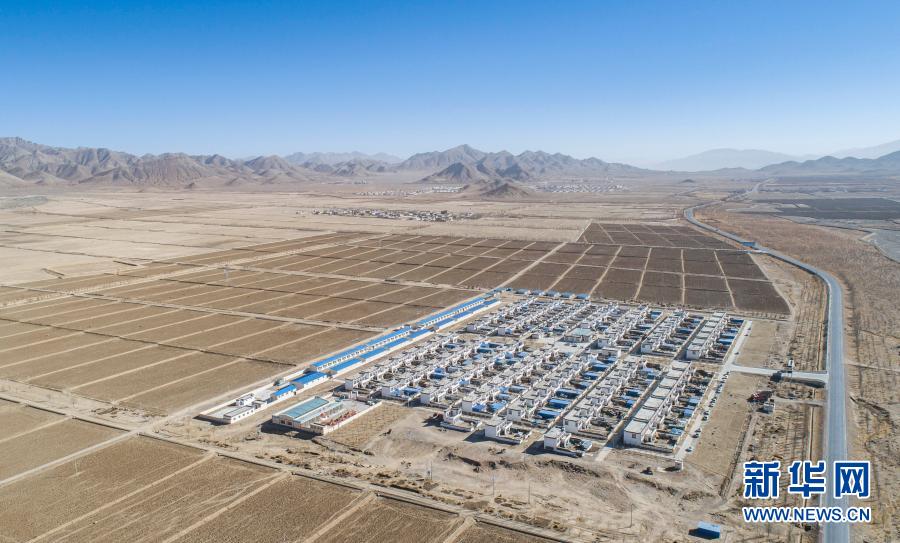 這是1月14日拍攝的西藏日喀則市薩迦縣扯休鄉(xiāng)嘎吉林村安置點(無人機照片)。新華社記者 孫非 攝