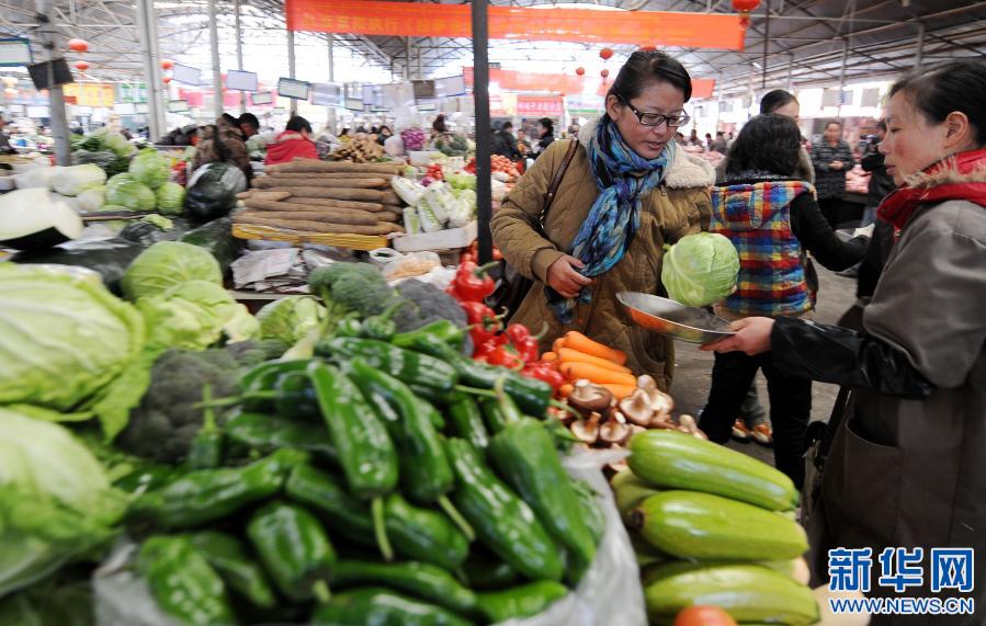 拉薩市民次仁拉姆(左)在菜市場買菜(2010年11月25日攝)。新華社記者 覺果 攝