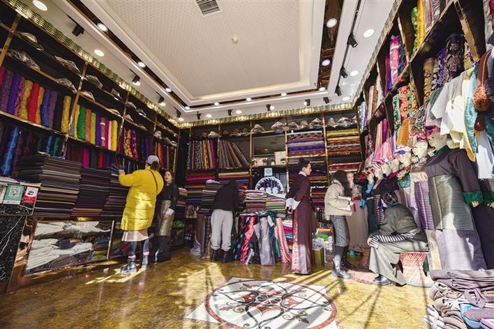 如果想要定制一款藏裝,相信很多人必定會(huì)去位于北京東路的措美林一帶逛逛。從措美林直至神力時(shí)代廣場附近的街道兩旁各類大小規(guī)模不一的藏裝店,無論男女老少,都可以在此買到自己想要的款式。