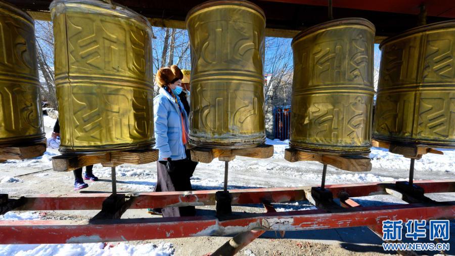 2月12日,在西藏自治區(qū)山南市乃東區(qū)澤當鎮(zhèn),格央(左)和家人一起,在藏歷新年第一天轉山祈福。新華社記者 劉金海 攝