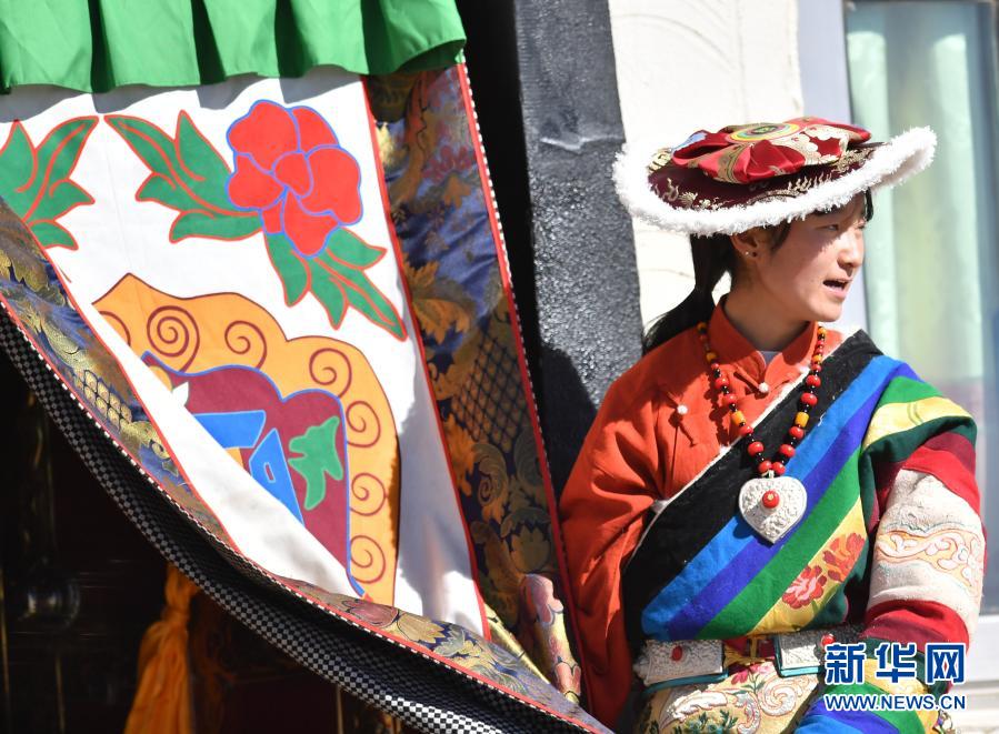 2月12日在藏北當(dāng)雄縣拍攝的穿著五彩藏袍的牧區(qū)女子。新華社記者 覺(jué)果 攝