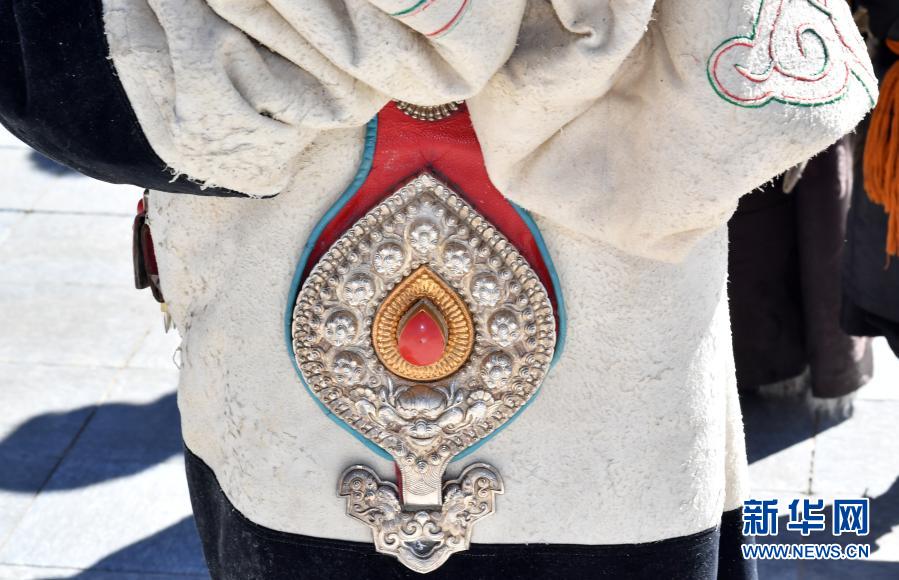 藏北當(dāng)雄縣一名牧區(qū)男子佩戴的銀飾(2月12日攝)。新華社記者 覺(jué)果 攝