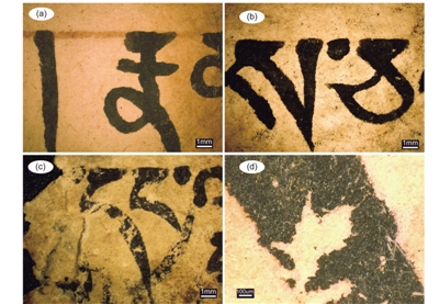 測(cè)定藏紙的年代,主要有兩種方法,一種是通過藏文的字體及內(nèi)容判定大致年代,還有一種是碳14測(cè)年技術(shù)。論文第一作者、中國科學(xué)院大學(xué)特別研究助理韓賓博士介紹,他們?cè)谡?qǐng)藏文專家進(jìn)行文字預(yù)判的基礎(chǔ)上,在兩個(gè)不同的實(shí)驗(yàn)室對(duì)藏紙樣品開展了碳14測(cè)年。結(jié)果表明該組殘片為12—13世紀(jì)古紙殘片。測(cè)年數(shù)據(jù)的一致性,也表明碳14測(cè)年技術(shù)可以很好地判定藏紙的年代,為后續(xù)藏紙的研究提供了參考。