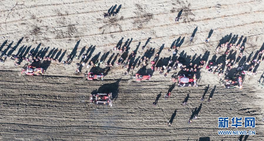 3月16日,克松社區(qū)居民在參加春耕儀式(無人機照片)。新華社記者 晉美多吉 攝