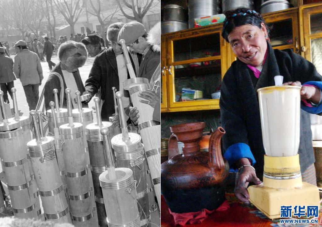 如今,只需輕輕一按開(kāi)關(guān),電動(dòng)酥油攪拌機(jī)就能制作出醇香可口的酥油茶。