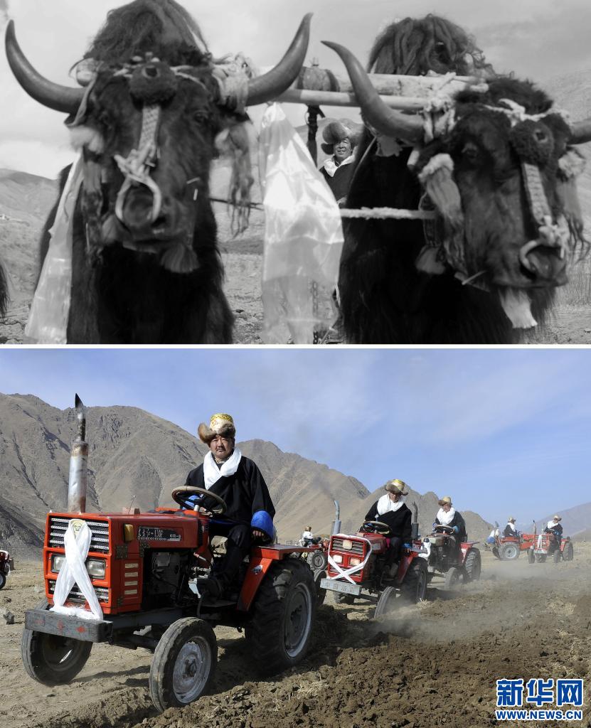 上世紀(jì)70年代,拖拉機(jī)第一次進(jìn)“公社”大院,藏族人民以迎接“新娘”的隆重儀式迎接“鐵牛”。