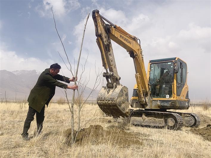 死了那么多樹,為什么還在堅(jiān)持?“那幾年,在這里隨手捧起一把黃土,還會(huì)沙化。我必須堅(jiān)持下來?!彼骼柿_布說。2015年春天,索朗羅布再次貸款40余萬元購買了一臺(tái)挖掘機(jī),準(zhǔn)備修建水渠和挖坑。同年3月,索朗羅布又一次獨(dú)自種樹苗,母親卓瑪央金心疼壞了,于是帶著村里姐妹們前來幫忙。不僅如此,她們還帶來了防止草原鼠啃食樹根的土方法,用塑料瓶圍著樹根包一圈,既能防止草原鼠搞破壞,還能節(jié)省成本。