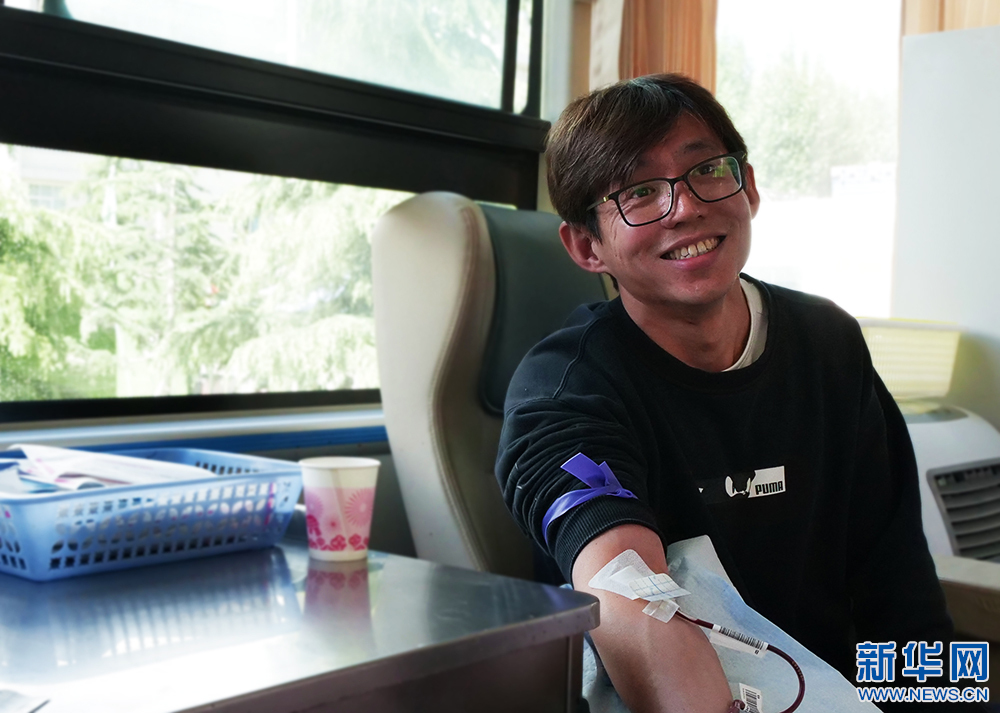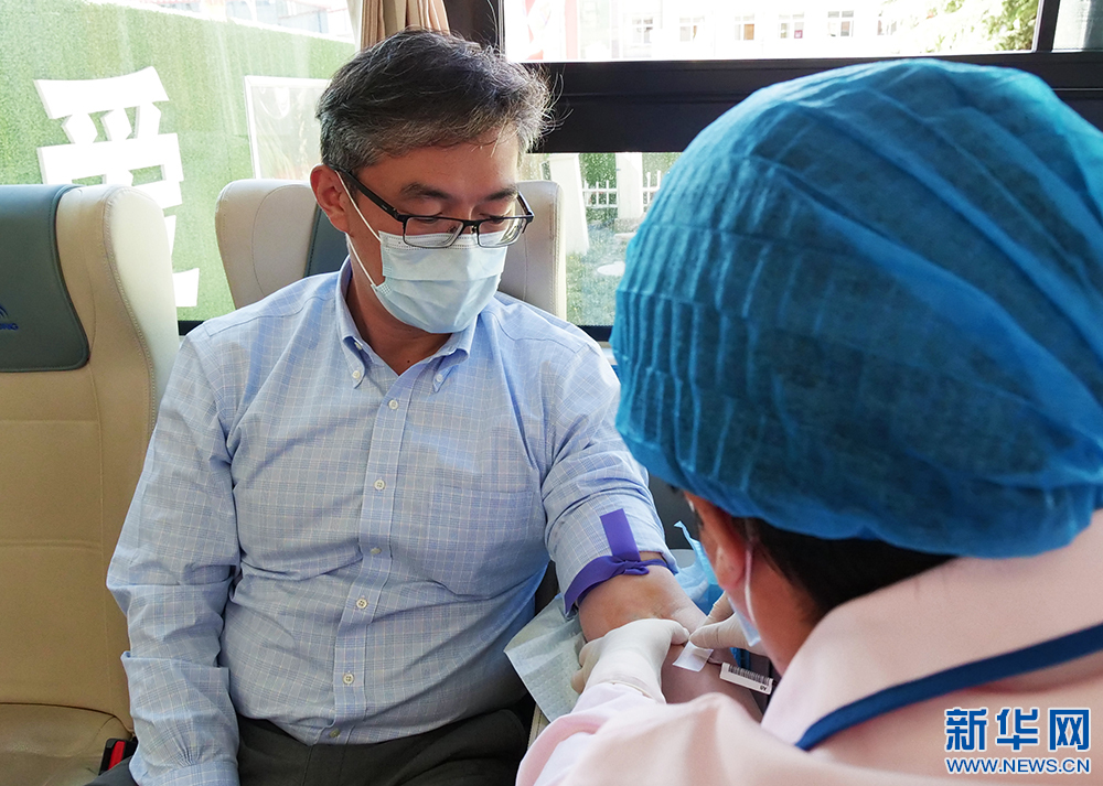 5月27日,來自北京協(xié)和醫(yī)院的援藏專家楊筱在獻(xiàn)血。(新華網(wǎng) 旦增努布攝)