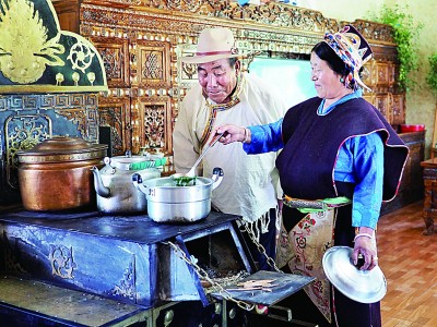 推開格桑曲珍家的院門,迎面映入眼簾的是坐北朝南、鑲嵌六扇大落地窗的藏式二層紅頂小樓,收拾得干凈整潔的院落透露出主人一家的勤勞。院子西邊的獨立衛(wèi)生間里,白底黃花的瓷磚鋪滿地面和墻面,太陽能熱水器、上下水衛(wèi)浴設施一應俱全。院子東南角上占地十余平方米的廚房里,配齊了現代化的抽油煙機和電子灶具。