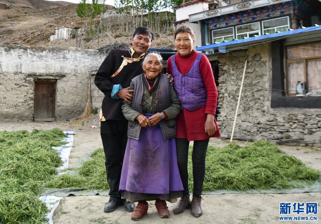 次仁央宗老人和兒子、女兒的合影(6月3日攝)。新華社記者 晉美多吉 攝