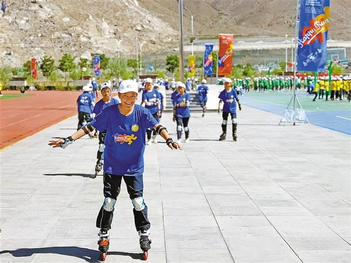 圖為2021年“奔跑吧·少年”兒童青少年主題健身活動(dòng)西藏分會(huì)場(chǎng)示范活動(dòng)。記者 鄭璐 袁海霞 攝