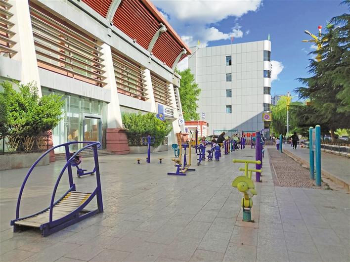 圖為昌都市全民健身公益活動(dòng)中心前供市民運(yùn)動(dòng)的健身器材。 記者 桑鄧旺姆 攝