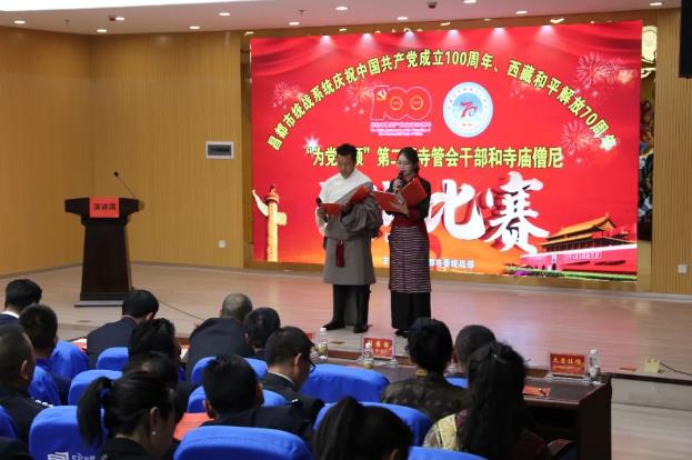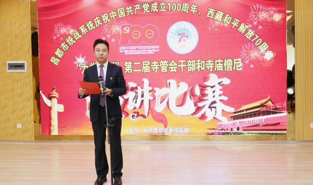 7月2日,昌都市委統(tǒng)戰(zhàn)部以慶祝中國(guó)共產(chǎn)黨成立100周年、西藏和平解放70周年“為黨贊頌”為主題,舉辦全市第二屆寺管會(huì)干部和僧尼演講比賽,市委常委、統(tǒng)戰(zhàn)部長(zhǎng),市政協(xié)黨組副書記澤仁俊美出席,市委宗教工作領(lǐng)導(dǎo)小組成員單位負(fù)責(zé)人和強(qiáng)巴林寺、卡若區(qū)寺管會(huì)干部代表、僧尼代表觀看了比賽。市委組織部、市委宣傳部、市委統(tǒng)戰(zhàn)部、市民委、市文化局、市宗教局等單位負(fù)責(zé)人擔(dān)任評(píng)委。