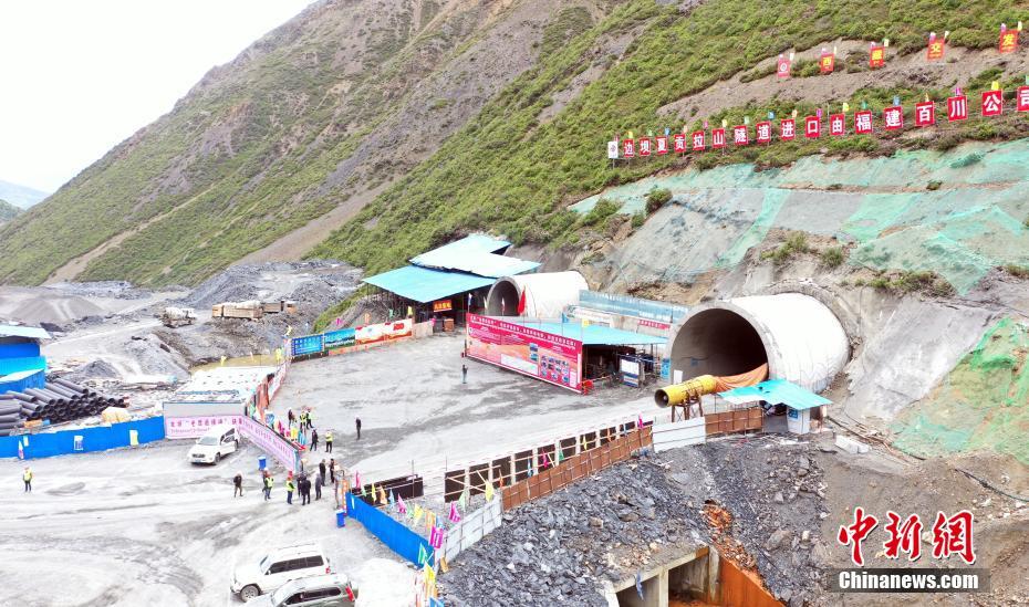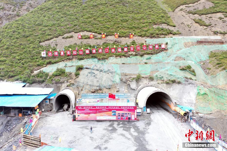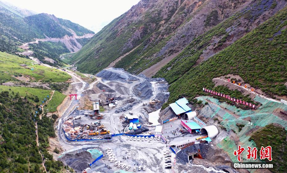 7月24日,航拍正在建設中的夏貢拉山隧道。穿越昌都市洛隆、邊壩兩縣和那曲市嘉黎縣的349國道控制性工程——夏貢拉山隧道項目建設正穩(wěn)步推進。(無人機照片) 中新社記者 劉忠俊 攝