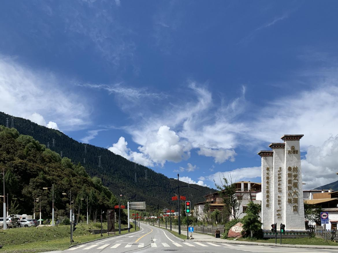 藍天下的魯朗國際旅游小鎮(zhèn) 央視網(wǎng)記者 王靜遠 攝