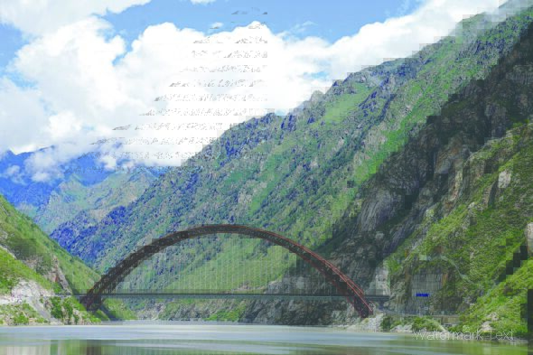 藏木雅魯藏布江雙線(xiàn)特大橋全長(zhǎng)525.1米,主拱跨徑430米(2021年7月11日攝)。新華社記者 劉洪明 攝