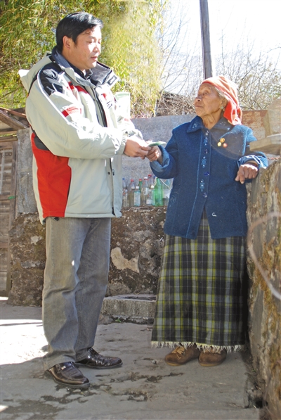 楊年華與“國旗阿媽啦”次仁曲珍老人在交談。