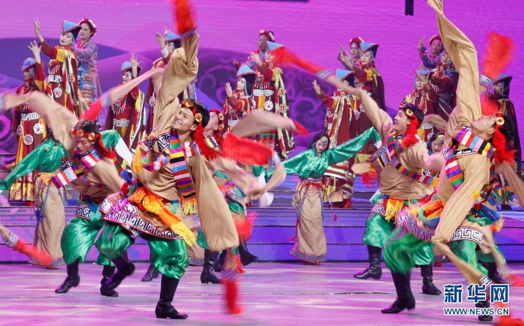 8月19日,慶祝西藏和平解放70周年文藝演出《西藏兒女心向黨》在拉薩西藏人民會(huì)堂精彩上演。新華社記者 黃敬文 攝