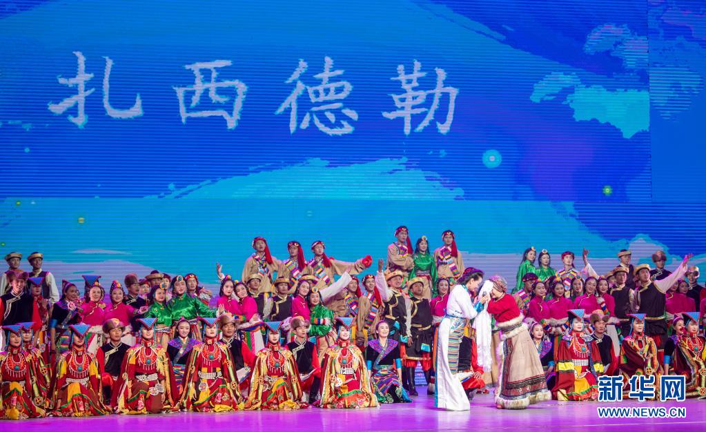 8月19日,慶祝西藏和平解放70周年文藝演出《西藏兒女心向黨》在拉薩西藏人民會(huì)堂精彩上演。新華社記者 翟健嵐 攝