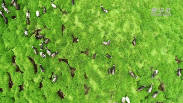 牦牛踏過碧綠的牧場(chǎng)