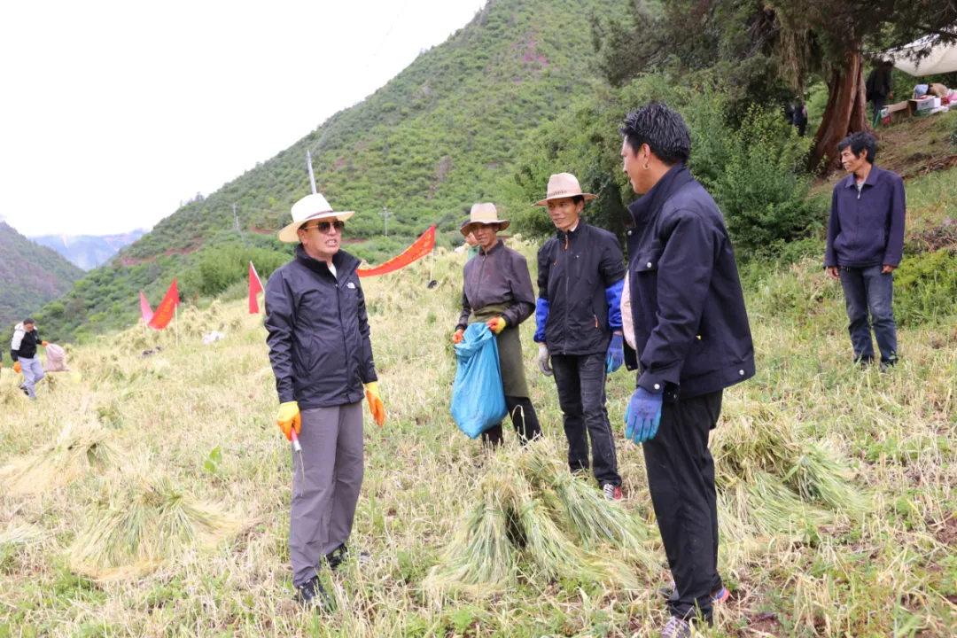 收割間隙,澤仁俊美與兩戶群眾交流,了解他們今年的收成情況,鼓勵他們抓住鄉(xiāng)村振興實施的各項好政策,進一步改善自己的生存生產生活條件,過上更加幸福美滿的生活。