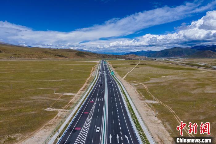 圖為8月27日,航拍西藏那拉高速羊八井段?!〗w波 攝