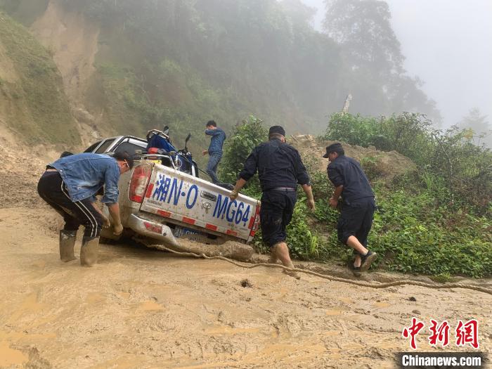 圖為背崩邊境派出所民警對(duì)被困車(chē)輛進(jìn)行救援。背崩邊境派出所供圖