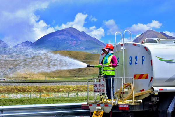 “在高原上種花種草太難了,比照顧孩子還要悉心。”后期管護(hù)工人周玉娟說。