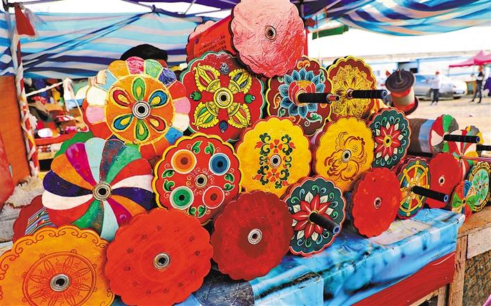 圖為制作精美的藏式風(fēng)箏線軸。