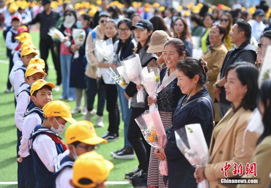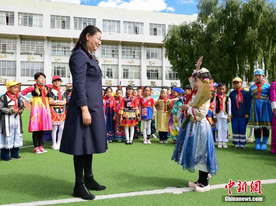 9月10日是第37個教師節(jié),西藏拉薩市第一小學(xué)舉行了以“譜團(tuán)結(jié)新篇 育桃李芬芳 感教師恩情”為主題的慶?;顒?。學(xué)生以敬禮、獻(xiàn)花、擁抱等方式,表達(dá)對老師的感恩之情。中新社記者 貢嘎來松 攝